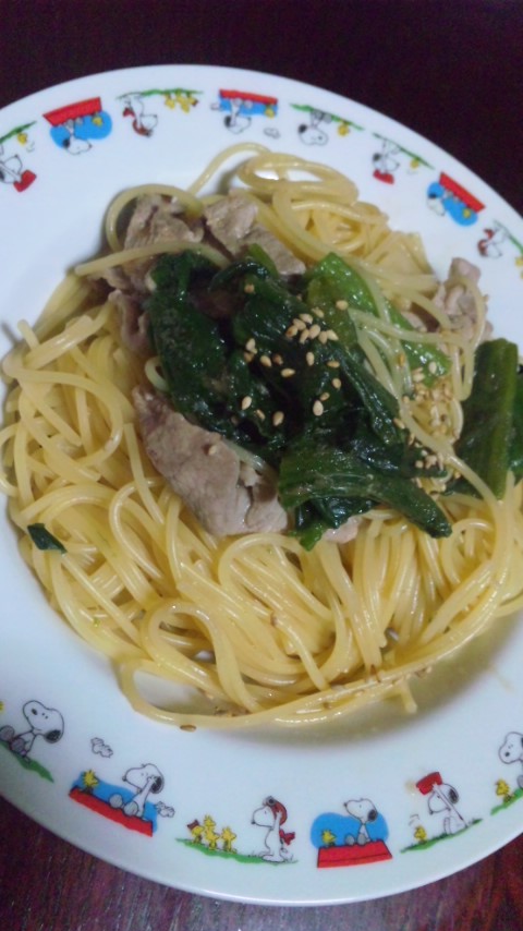 豚肉とほうれんそうのパスタ