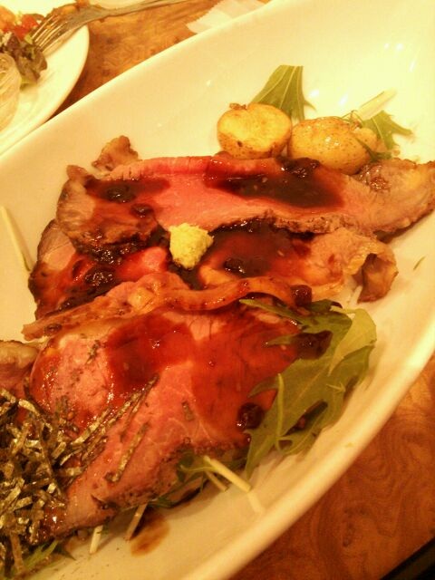 甘醤油風ソースにわさびが添えてあって